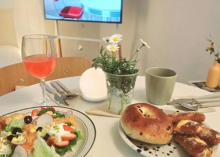 The kitchen amenities at Zeze House At Sillim Villa feature an electric kettle, a fridge, and kitchenware, provided in a dining area. Zeze House At Sillim Villa is approximately 5 minutes on foot from Boramaegapeul Apt bus station and in the vicinity of Sindaebang underground station.